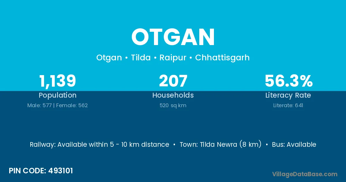 Tilda Newra (8 km) is the nearest town to Otgan village for major economic activities and is located approximately 8 km away.