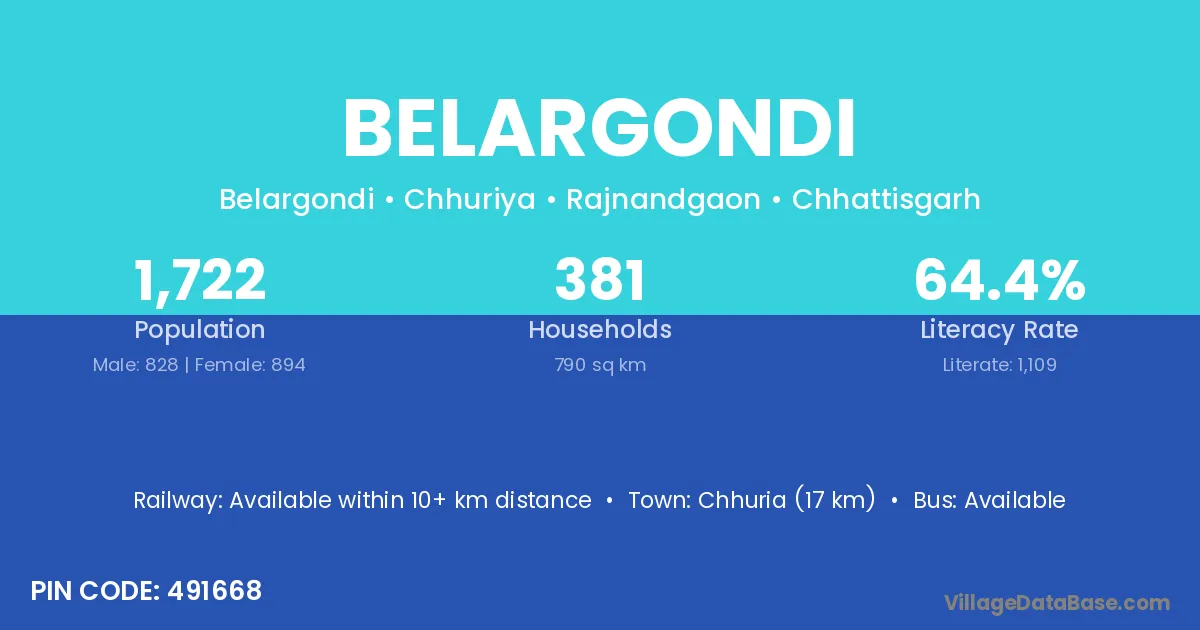 Ambagarh Chowki (10 km) is the nearest town to Belargondi village for major economic activities and is located approximately 10 km away.
