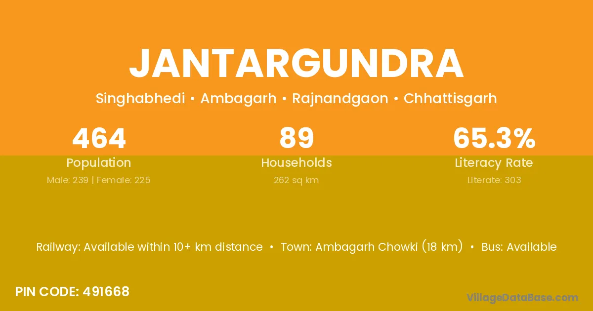 Ambagarh Chowki (18 km) is the nearest town to Jantargundra village for major economic activities and is located approximately 18 km away.