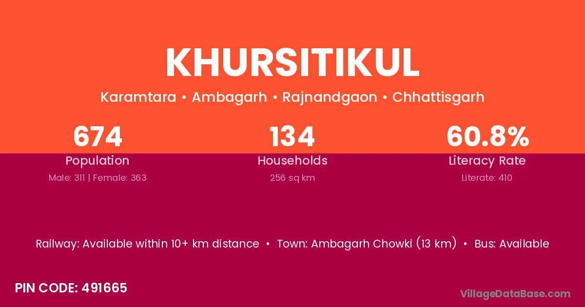 Khursitikul village has a total population of 674 people, of which 311 are males and 363 are females.