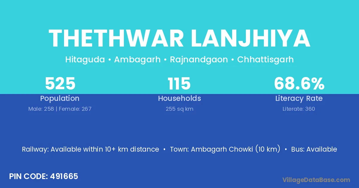 Thethwar Lanjhiya village has a total population of 525 people, of which 258 are males and 267 are females.
