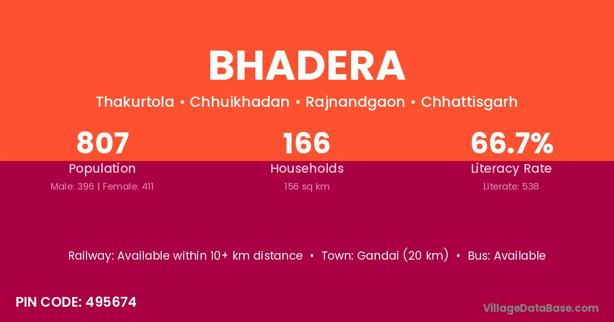 Bhadera village is located in the Chhuikhadan Tehsil of the Rajnandgaon district in Chhattisgarh .