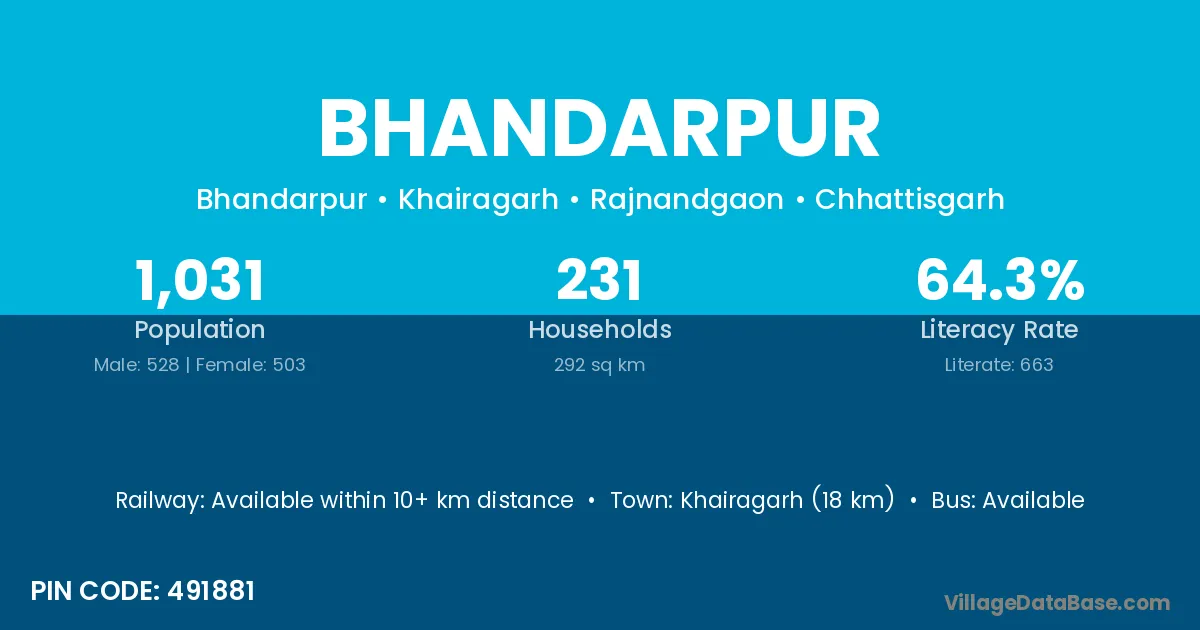 Gandai (23 km) is the nearest town to Bhandarpur village for major economic activities and is located approximately 23 km away.