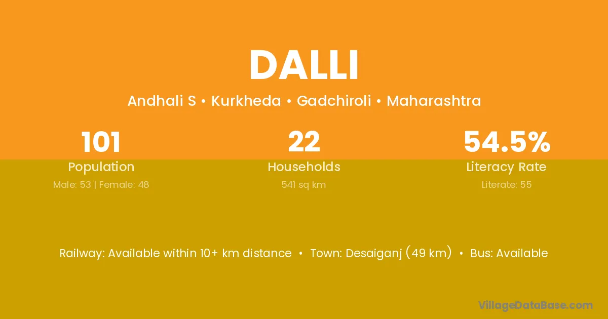 Gandai (53 km) is the nearest town to Dalli village for major economic activities and is located approximately 53 km away.