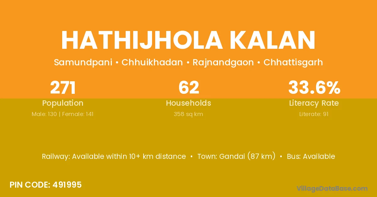 Hathijhola Kalan village is located in the Chhuikhadan Tehsil of the Rajnandgaon district in Chhattisgarh .