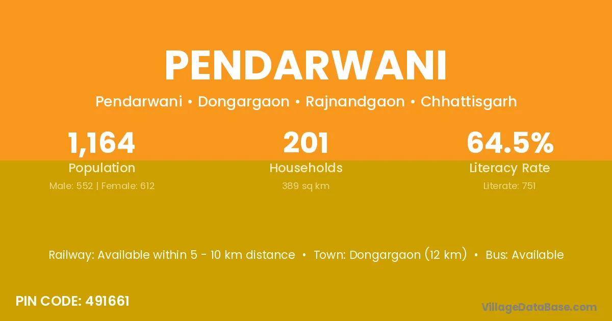 Gandai (11 km) is the nearest town to Pendarwani village for major economic activities and is located approximately 11 km away.