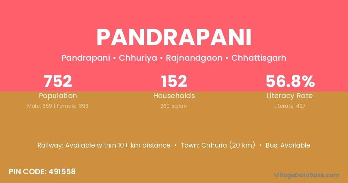 Pandrapani village is located in the Chhuriya Tehsil of the Rajnandgaon district in Chhattisgarh .