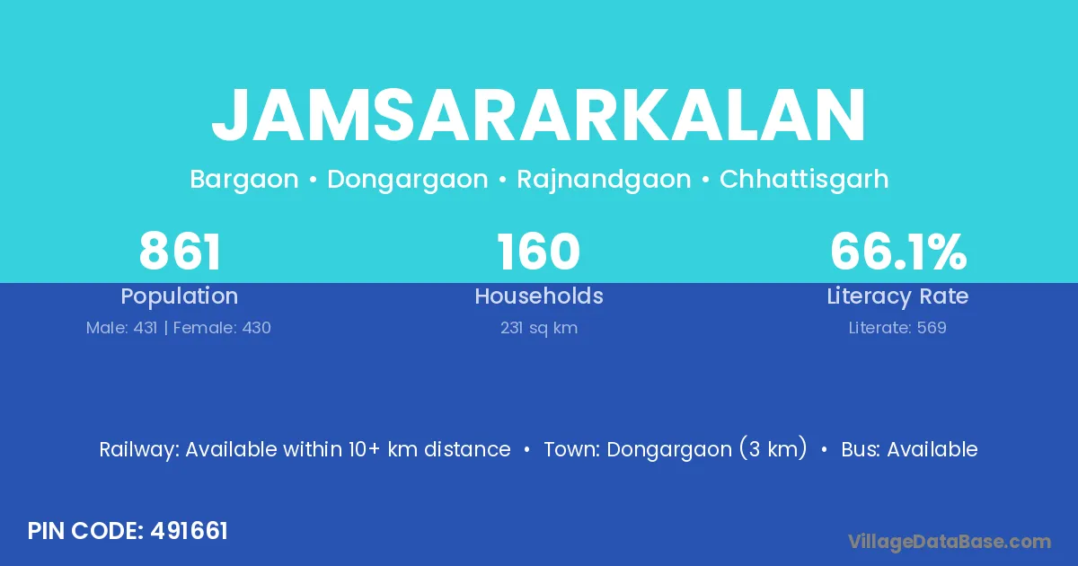 Dongargaon (3 km) is the nearest town to Jamsararkalan village for major economic activities and is located approximately 3 km away.