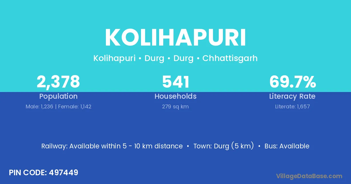 Dongargarh (17 km) is the nearest town to Kolihapuri village for major economic activities and is located approximately 17 km away.
