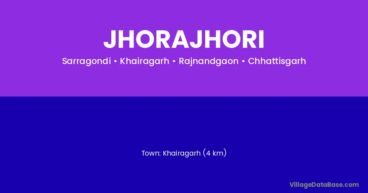 Khairagarh (4 km) is the nearest town to Jhorajhori village for major economic activities and is located approximately 4 km away.
