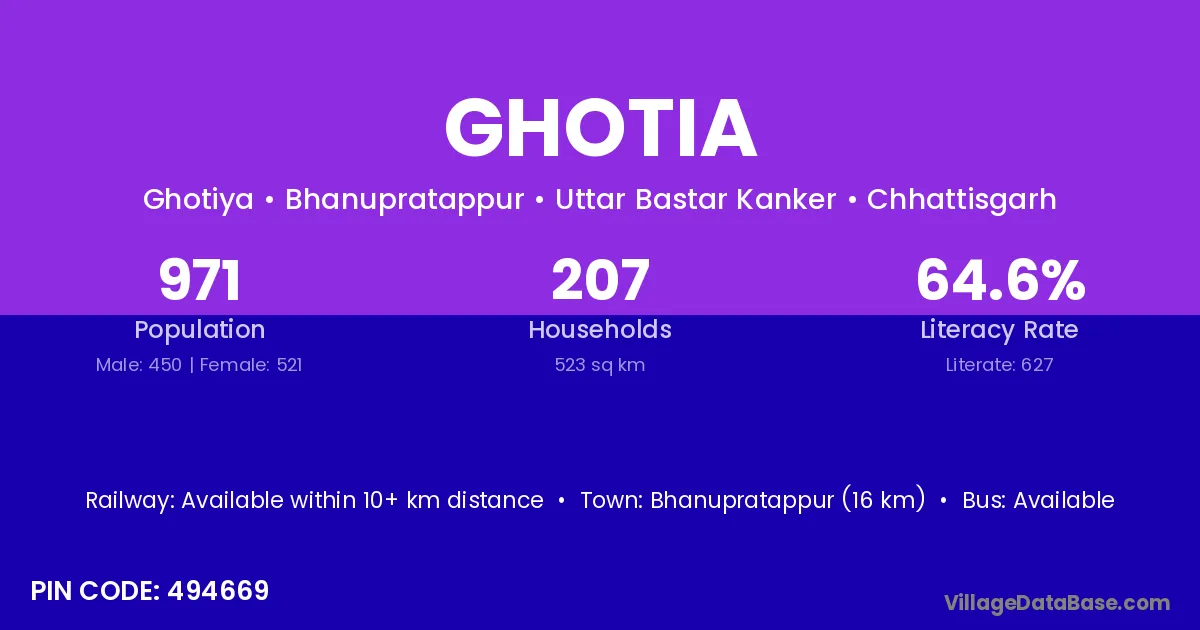 According to Census 2011 information, the village code of Ghotia village is 492015.