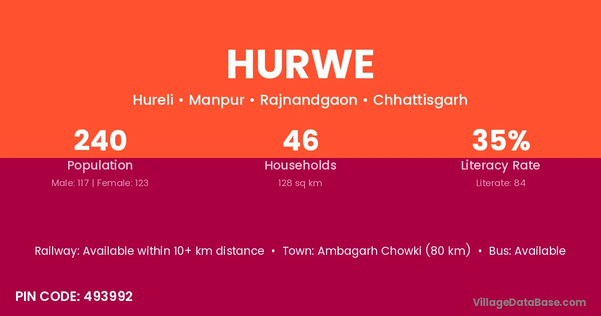 Ambagarh Chowki (80 km) is the nearest town to Hurwe village for major economic activities and is located approximately 80 km away.