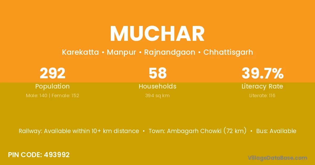 Muchar village has a total population of 292 people, of which 140 are males and 152 are females.