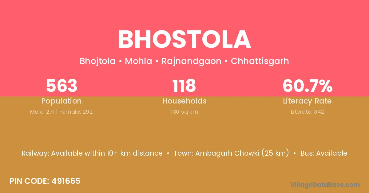 According to Census 2011 information, the village code of Bhostola village is 491665.
