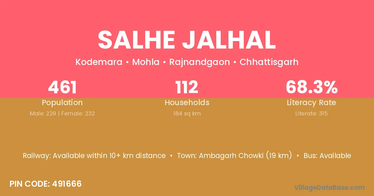 Salhe Jalhal village has a total population of 461 people, of which 229 are males and 232 are females.