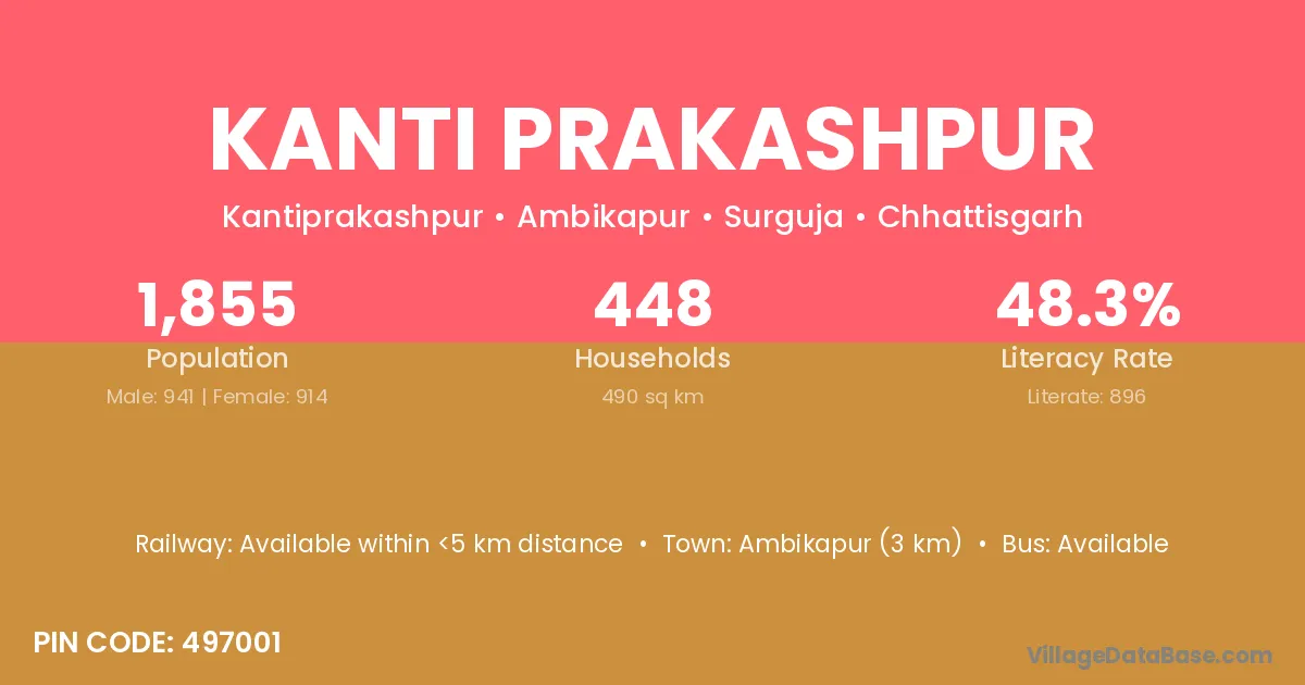 Ambikapur (3 km) is the nearest town to Kanti Prakashpur village for major economic activities and is located approximately 3 km away.