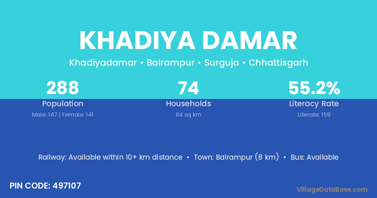 Khadiya Damar village is located in the Balrampur Tehsil of the Surguja district in Chhattisgarh .