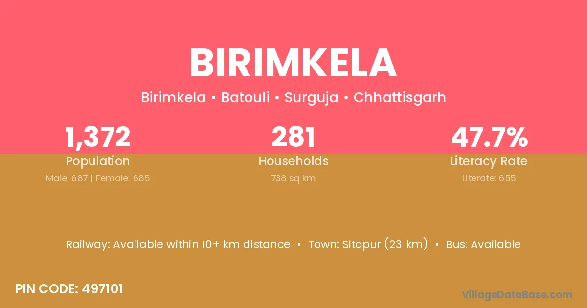 Sitapur (23 km) is the nearest town to Birimkela village for major economic activities and is located approximately 23 km away.