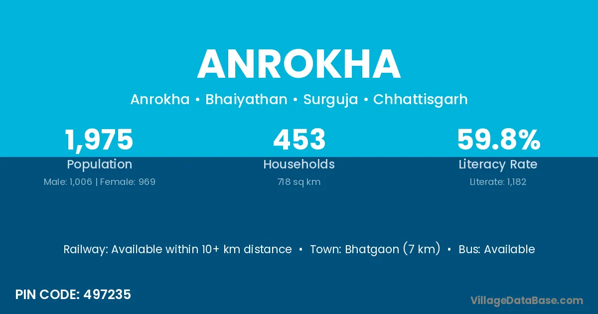 Anrokha village is located in the Bhaiyathan Tehsil of the Surguja district in Chhattisgarh .