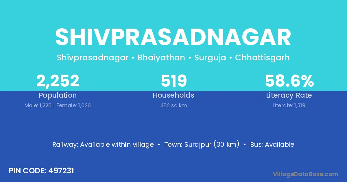 Surajpur (30 km) is the nearest town to Shivprasadnagar village for major economic activities and is located approximately 30 km away.