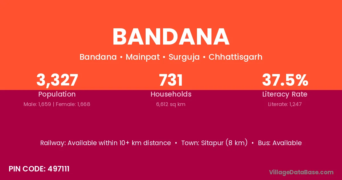 Sitapur (8 km) is the nearest town to Bandana village for major economic activities and is located approximately 8 km away.