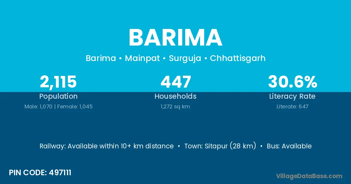 Sitapur (28 km) is the nearest town to Barima village for major economic activities and is located approximately 28 km away.