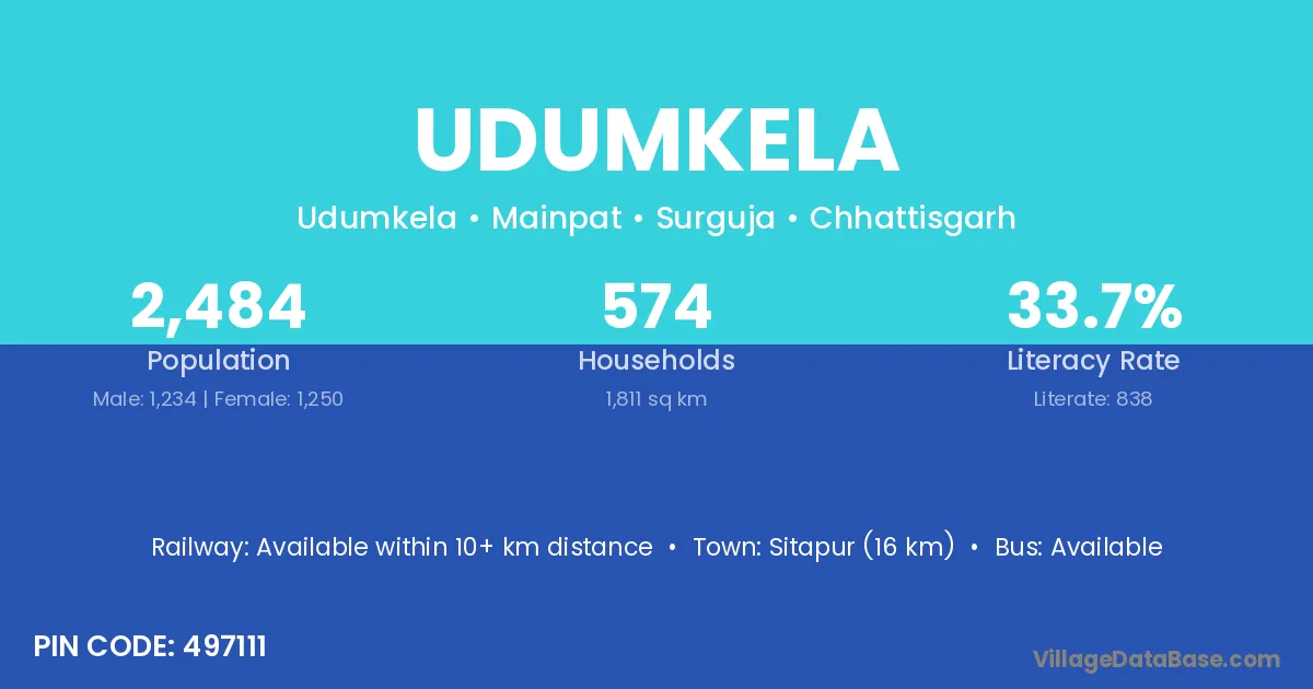 Sitapur (16 km) is the nearest town to Udumkela village for major economic activities and is located approximately 16 km away.