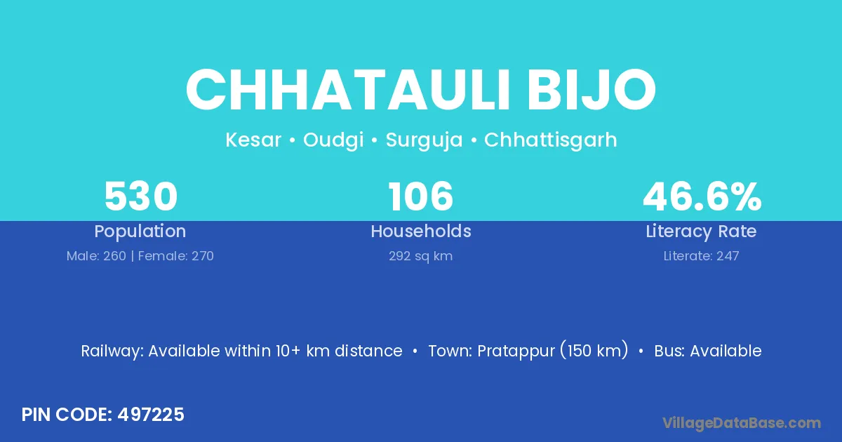 Chhatauli Bijo village has a total population of 530 people, of which 260 are males and 270 are females.