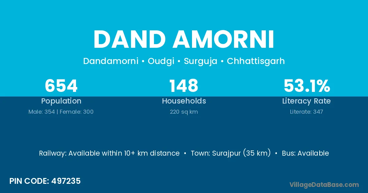Surajpur (35 km) is the nearest town to Dand Amorni village for major economic activities and is located approximately 35 km away.