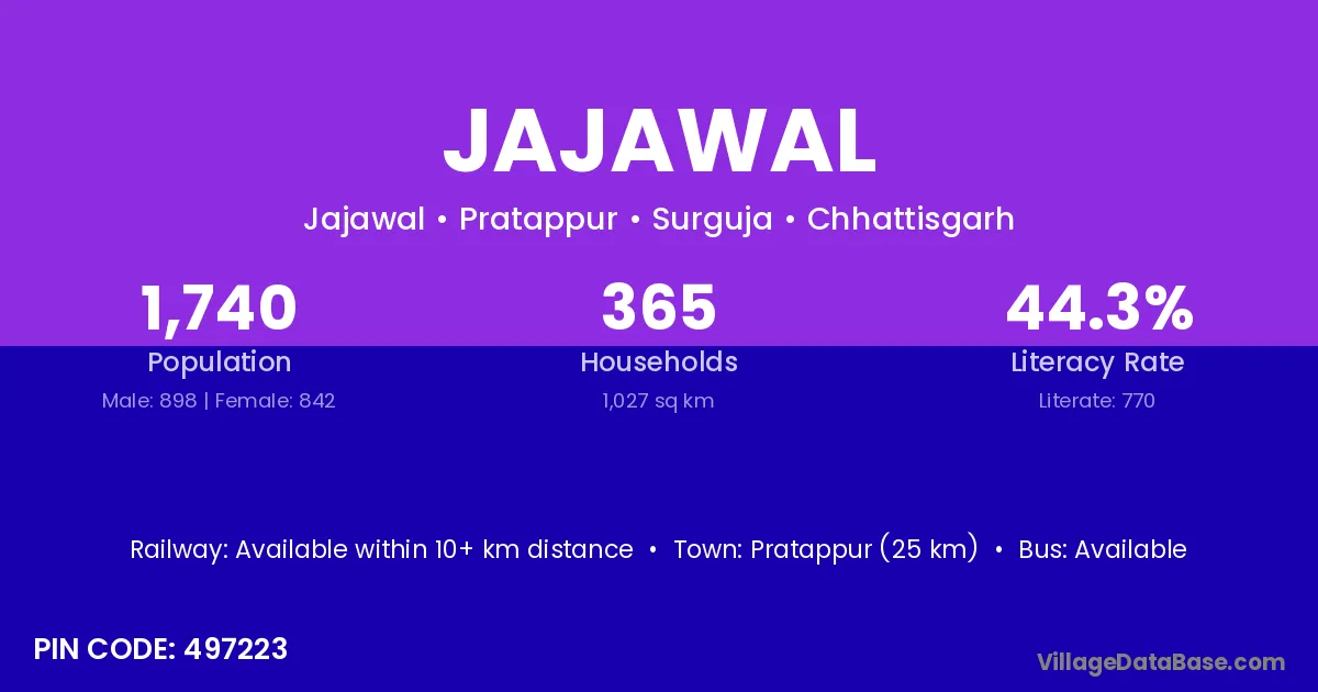 Pratappur (25 km) is the nearest town to Jajawal village for major economic activities and is located approximately 25 km away.
