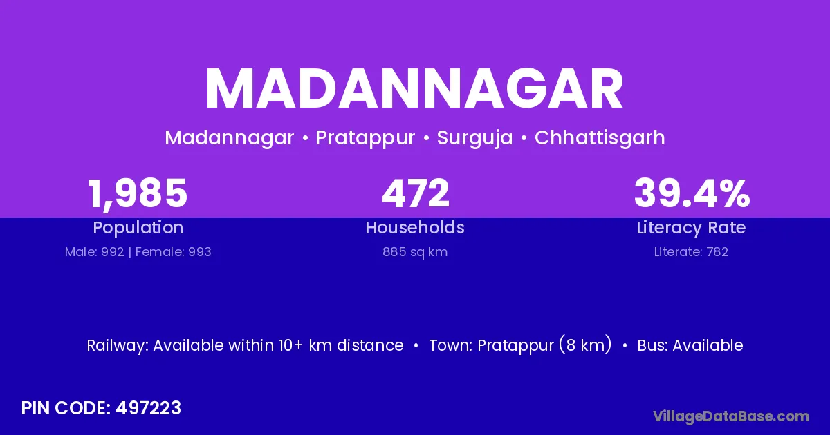 Pratappur (8 km) is the nearest town to Madannagar village for major economic activities and is located approximately 8 km away.