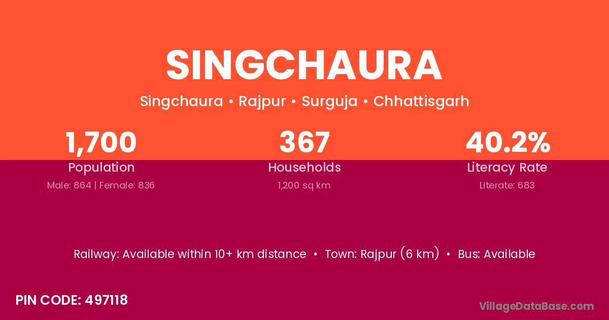 According to Census 2011 information, the village code of Singchaura village is 497118.