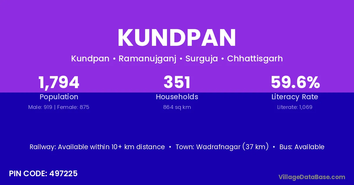 Wadrafnagar (37 km) is the nearest town to Kundpan village for major economic activities and is located approximately 37 km away.