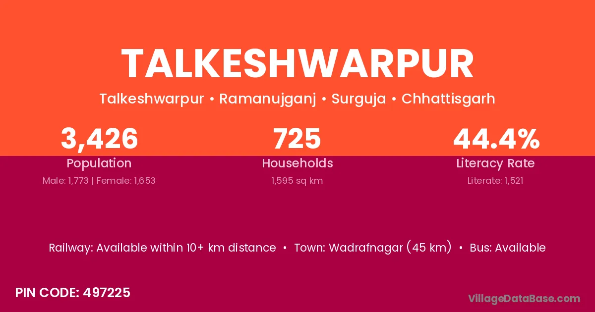 According to Census 2011 information, the village code of Talkeshwarpur village is 497225.