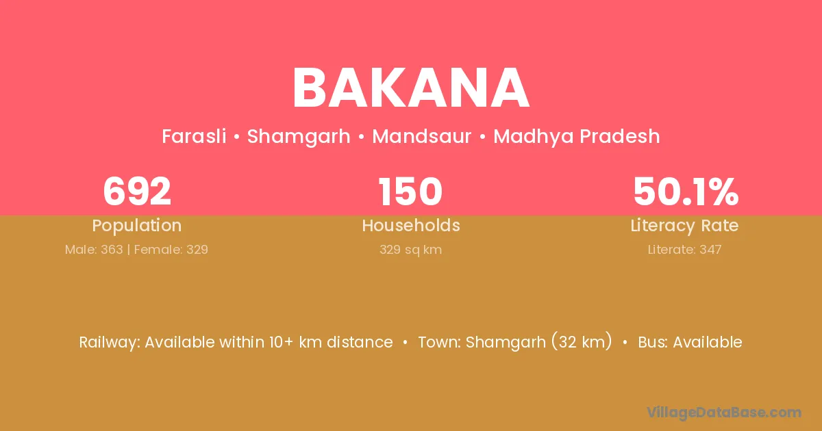 Surajpur (26 km) is the nearest town to Bakana village for major economic activities and is located approximately 26 km away.