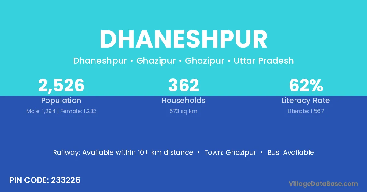 Surajpur (12 km) is the nearest town to Dhaneshpur village for major economic activities and is located approximately 12 km away.