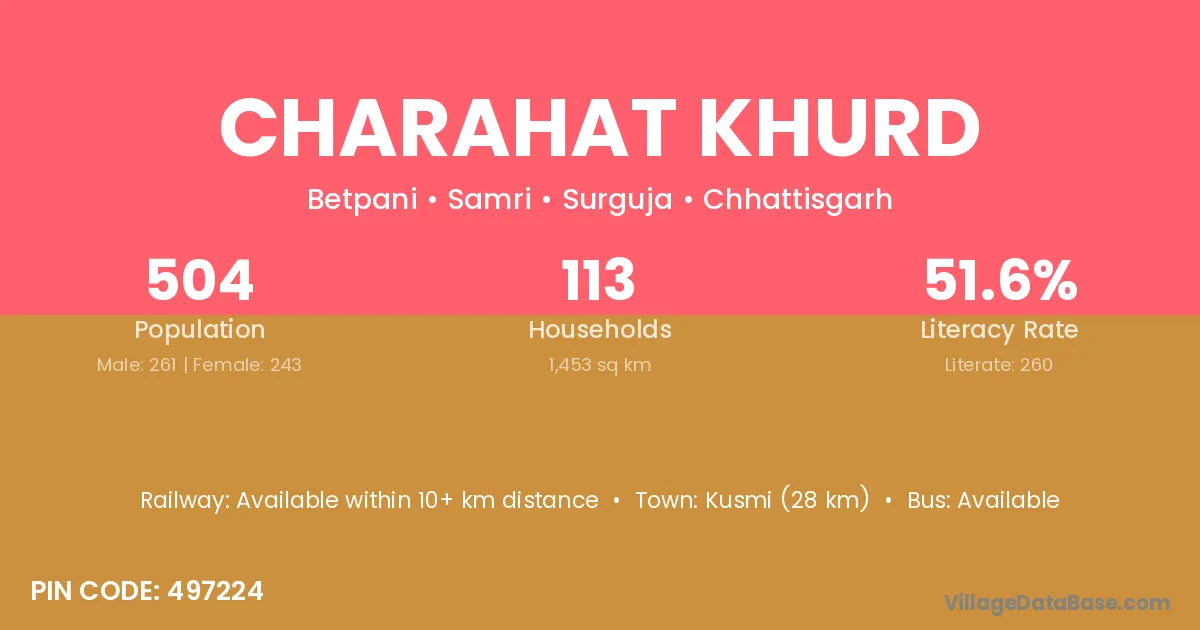 Charahat Khurd village has a total population of 504 people, of which 261 are males and 243 are females.