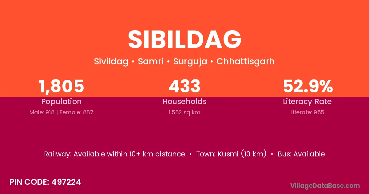Sibildag village is located in the Samri Tehsil of the Surguja district in Chhattisgarh .