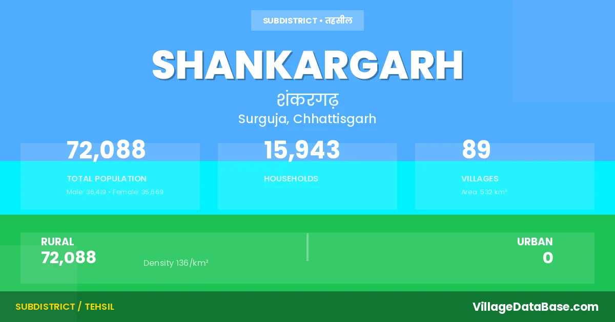 Shankargarh is a town and Tehsil in the Surguja district of the Chhattisgarh. In India, a Tehsil is a subdivision of a district responsible for the administration and revenue collection of a specific area within the district. Tehsils play a crucial role in the local governance structure, contributing significantly to the development and administration of their communities.
