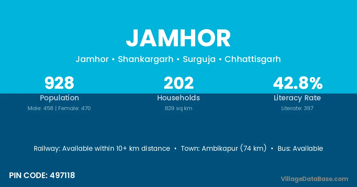 Ambikapur (74 km) is the nearest town to Jamhor village for major economic activities and is located approximately 74 km away.