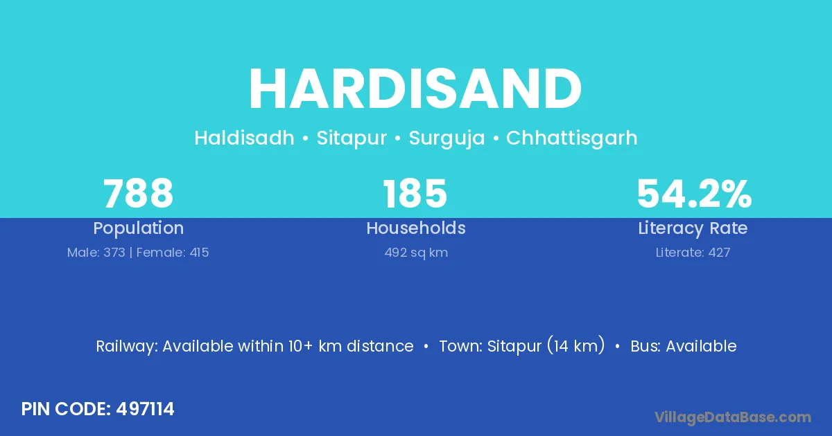 Sitapur (14 km) is the nearest town to Hardisand village for major economic activities and is located approximately 14 km away.