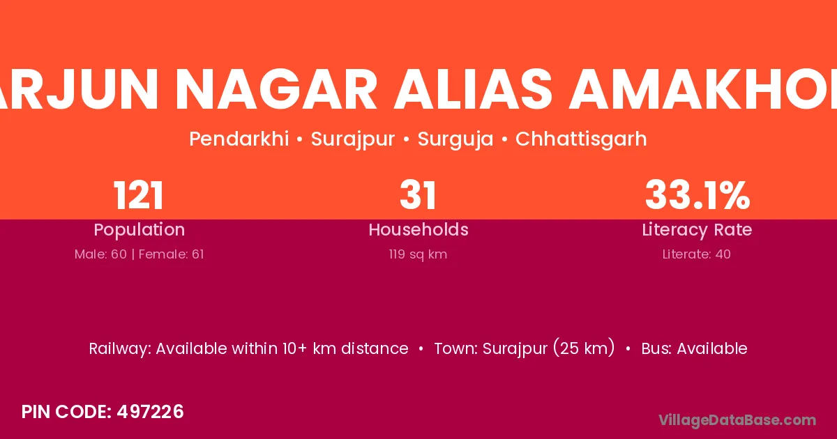 Arjun Nagar Alias Amakhoh village has a total population of 121 people, of which 60 are males and 61 are females.