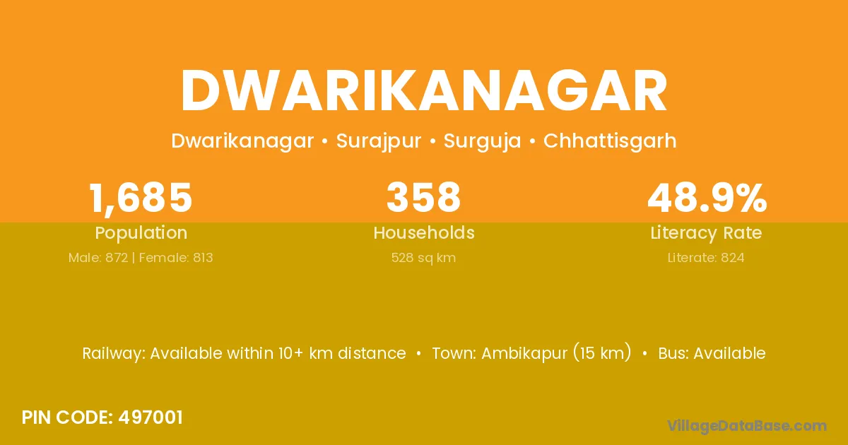Ambikapur (15 km) is the nearest town to Dwarikanagar village for major economic activities and is located approximately 15 km away.