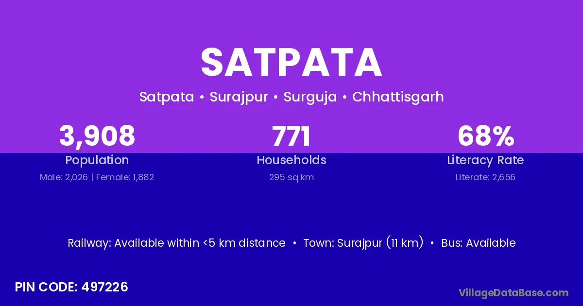 Surajpur (11 km) is the nearest town to Satpata village for major economic activities and is located approximately 11 km away.