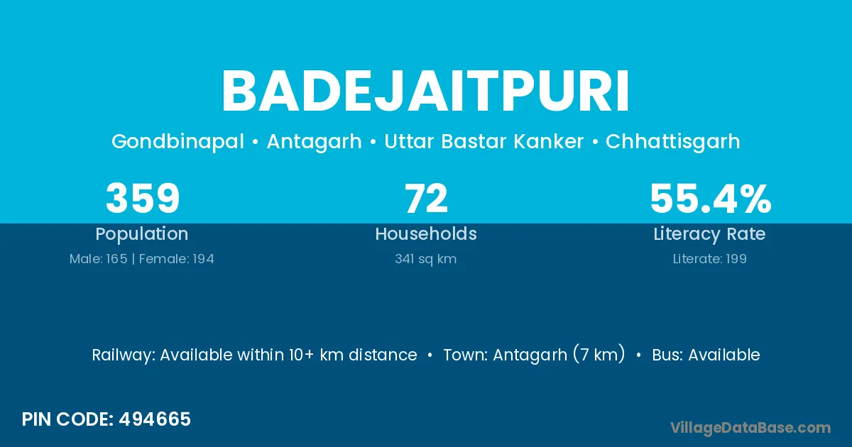 Badejaitpuri village has a total population of 359 people, of which 165 are males and 194 are females.