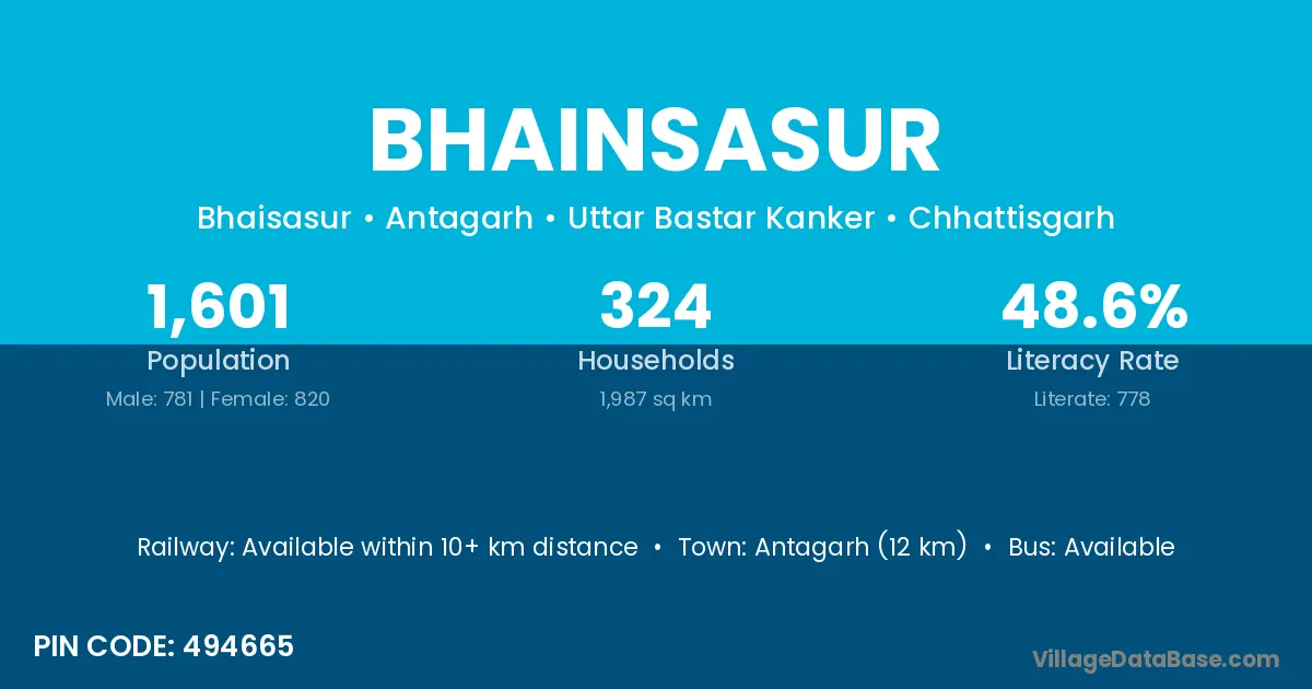 According to Census 2011 information, the village code of Bhainsasur village is 494665.