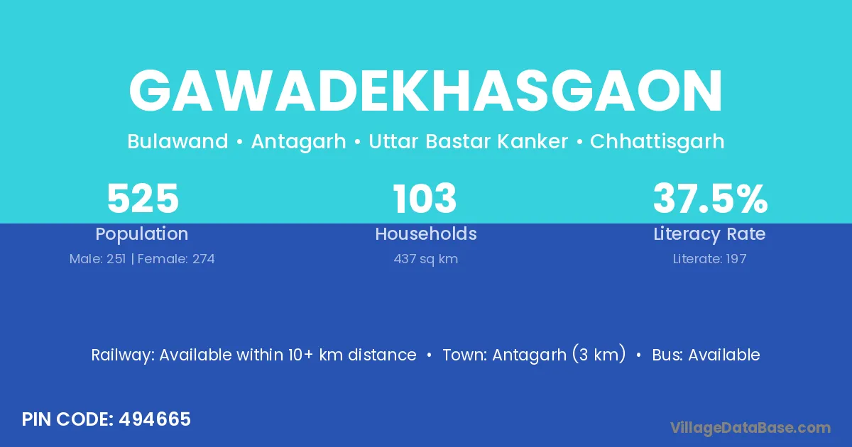 According to Census 2011 information, the village code of Gawadekhasgaon village is 494665.