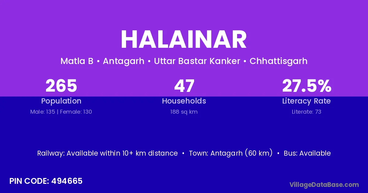 Antagarh (60 km) is the nearest town to Halainar village for major economic activities and is located approximately 60 km away.