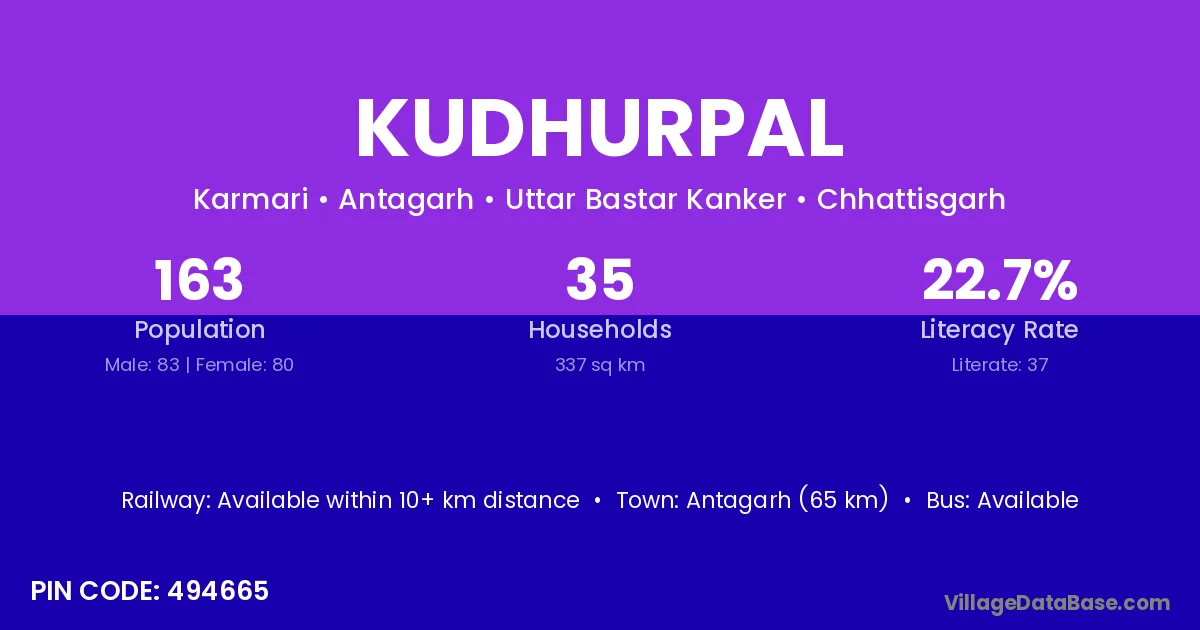 Kudhurpal village has a total population of 163 people, of which 83 are males and 80 are females.