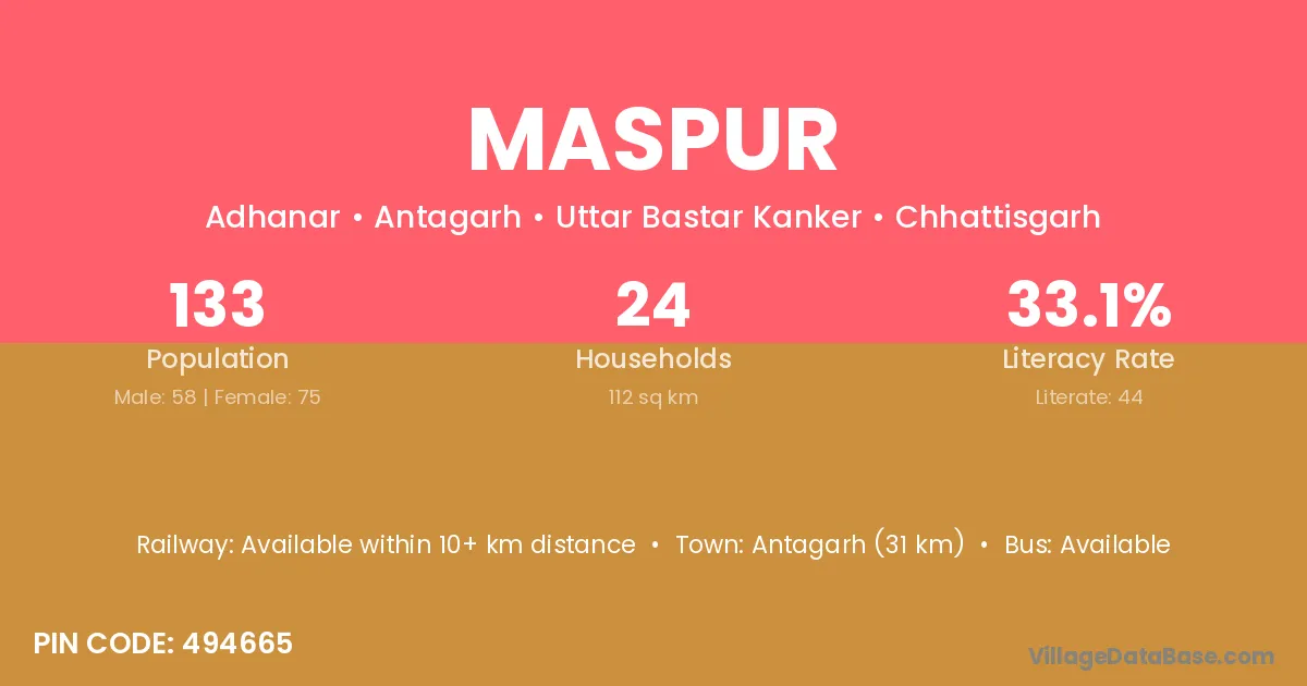Maspur village is located in the Antagarh Tehsil of the Uttar Bastar Kanker district in Chhattisgarh .